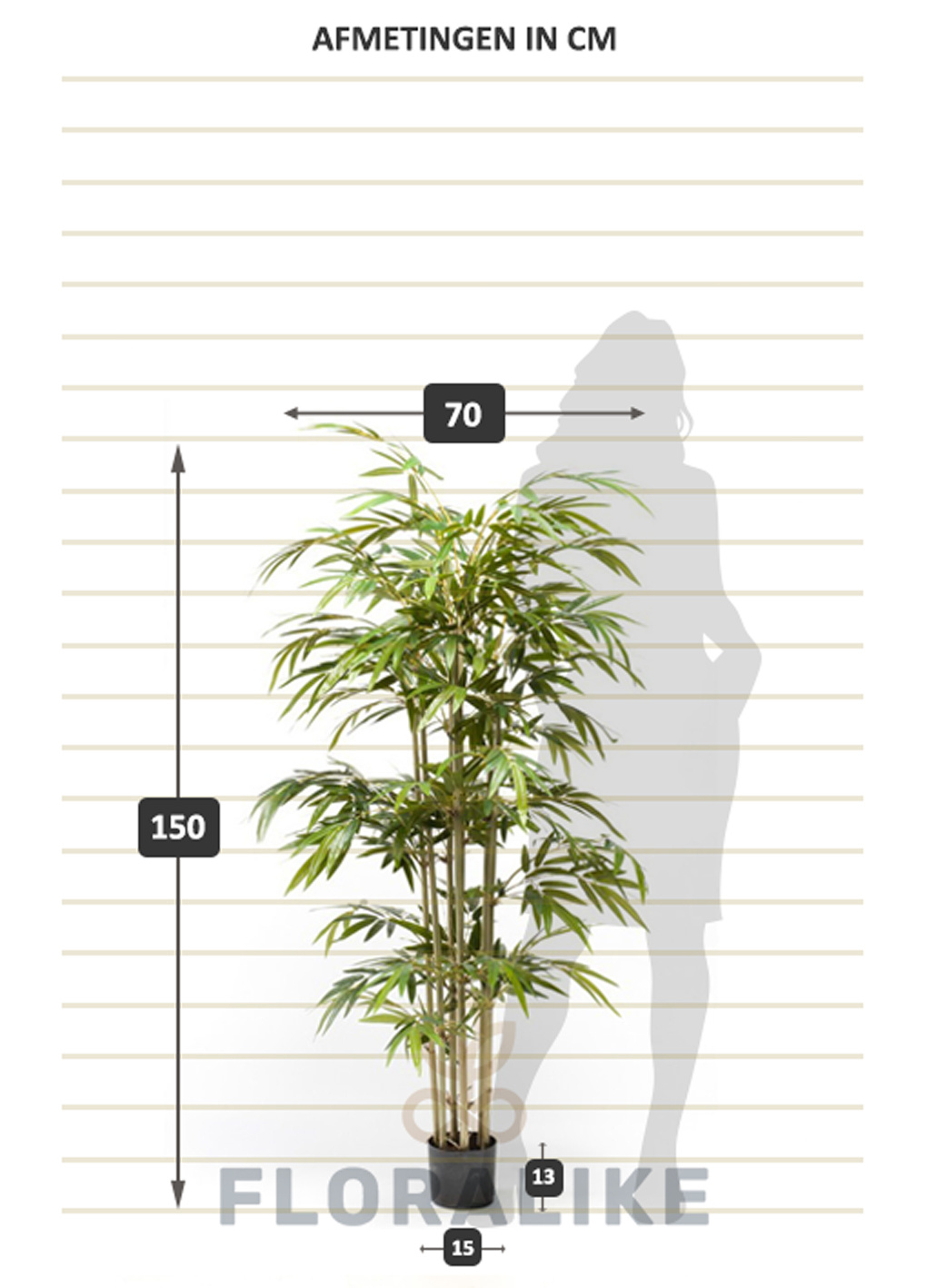 Creëer een serene en rustgevende sfeer met deze prachtige kunstplant Bamboe 150cm. Deze levensechte kunst bamboe brengt een Oosterse touch in je interieur, zonder dat je omkijken hebt naar onderhoud. Ideaal voor woonkamer, kantoor of elke andere ruimte die een groene boost kan gebruiken. Bestel nu jouw kunstplant bamboe 150cm en geniet direct van een stijlvolle en onderhoudsvrije decoratie!